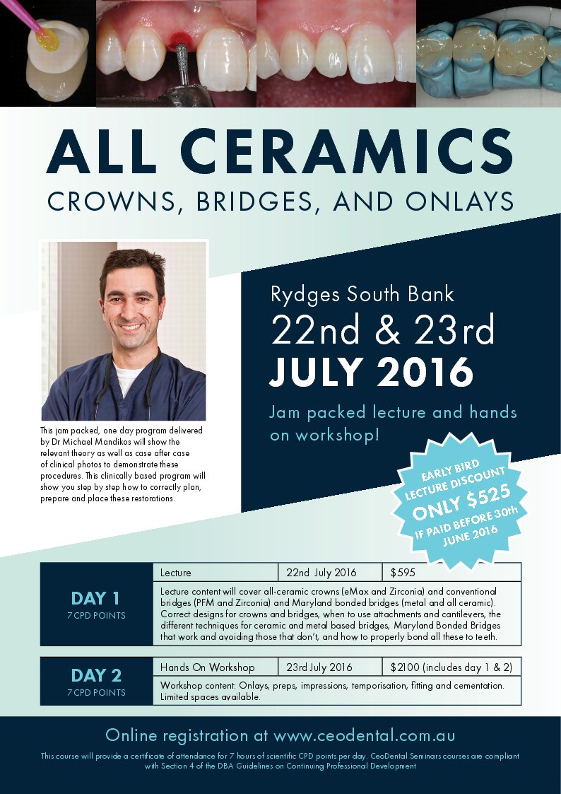 - Course: All Ceramics Crowns, Bridges and Onlays Lecture ONLY 1 day