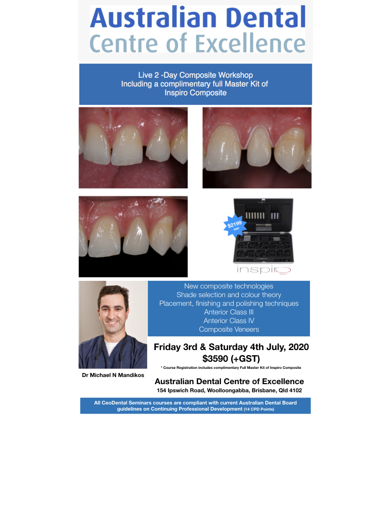 - Venue: Australian Dental Centre of Excellence, lvl 1, 154 Ipswich Road, Woolloongabba, QLD 4102